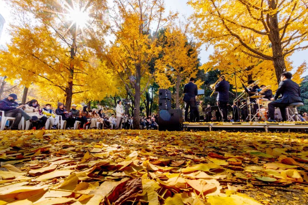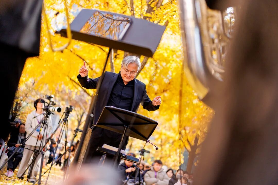凯迪拉克・上海音乐厅户外南广场区域被金黄银杏叶层层铺满。这片已陪伴市民十二载的“最美城市舞台”,如今依然为上海的城市文化生活增添着熠熠光彩。12月6日,凯迪拉克・上海音乐厅品牌项目“银杏音乐会”,作为2025上海城市草坪音乐会“冬之乐”系列演出之一,在音乐厅南广场西侧银杏林如期而至。