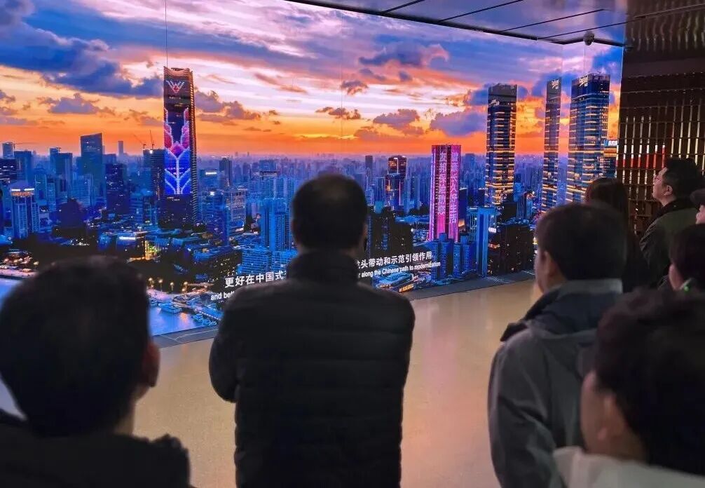 当天上午,采风团自秦皇岛路渡口出发,乘观览车沿滨江缓行。短短数公里,宛如一场时空穿梭——一侧是静静流淌的黄浦江,另一侧是徐徐展开的历史画卷:厚重的水厂栈桥、生态智慧的雨水花园、活力时尚的渔人码头、雅致静谧的滨江书苑、温暖便民的人人屋,以及植物与钢结构交融共生的绿之丘……美术家们循着导览,用目光捕捉变换的景致,相机快门声此起彼伏,为创作积累视觉素材。
