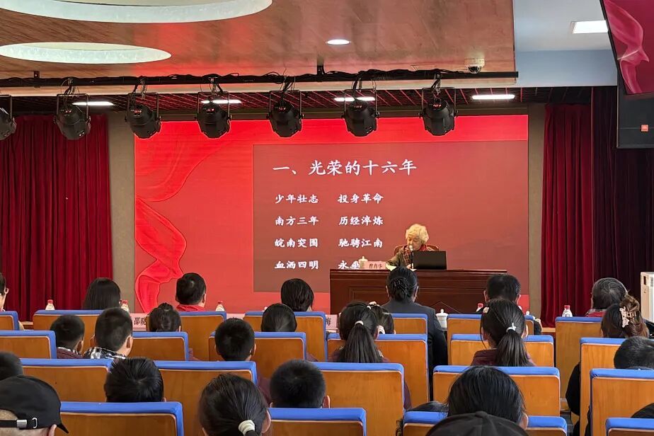 曹肖华奶奶的讲述,让在场师生深受触动。学生代表眼含热泪,声音铿锵地分享感想:“聆听曹奶奶的讲述,我仿佛穿越了时空,看到了邱子华烈士为民族解放事业奋勇拼搏的身影。我们脚下的这片土地,是无数先烈用鲜血浇灌的热土;我们享受的和平岁月,是他们用生命换来的馈赠。作为新时代少年,我们定会铭记历史,把红色基因融入血脉,好好学习,增长本领,将来用自己的力量守护祖国的繁荣昌盛。”