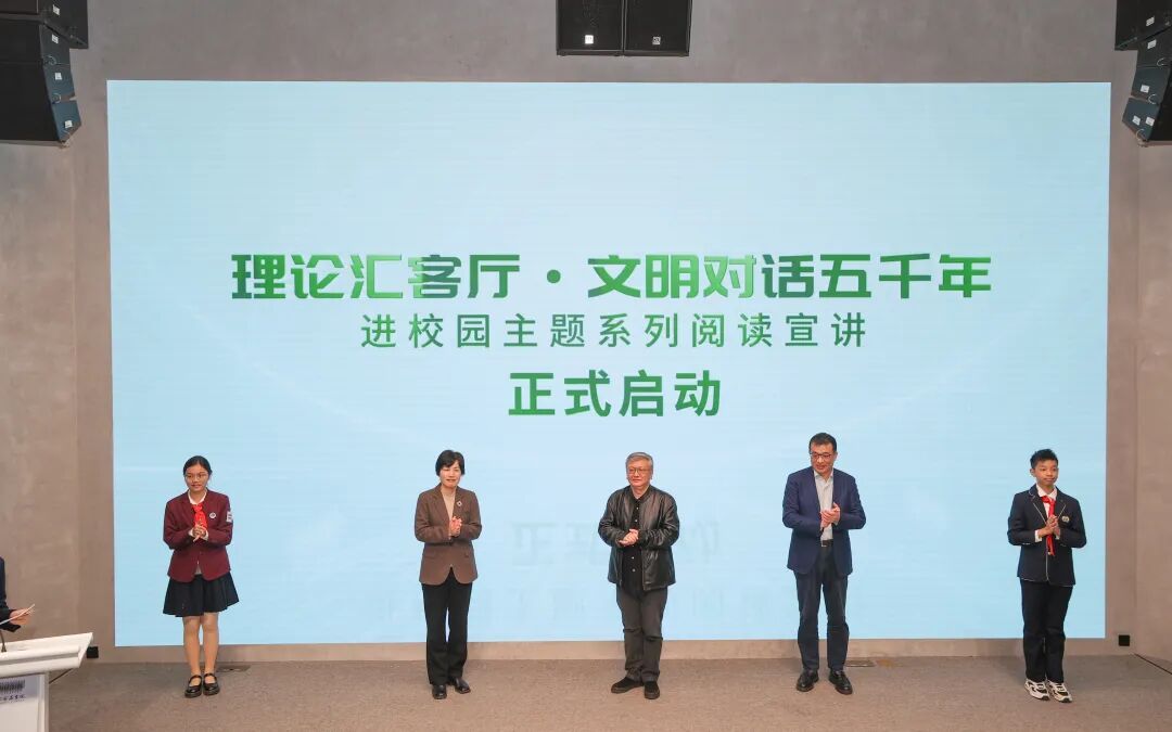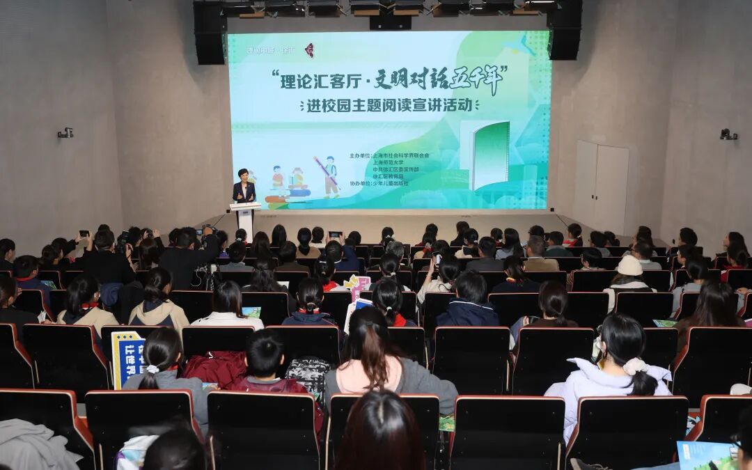 为深入学习贯彻落实党的二十届四中全会精神,厚植青少年开放包容、兼具家国情怀与人类关怀的全球视野,培育根植中华文脉、彰显时代精神的文化自信自强,培养勇于对话沟通、善于传播表达,具有世界文明交流互鉴自觉与使命担当的未来一代,12月9日,由上海市社联、上海师范大学、中共徐汇区委宣传部、徐汇区教育局共同主办,少年儿童出版社协办的“理润申城|徐汇•理论汇客厅•文明对话五千年”进校园主题系列阅读宣讲在徐家汇书院启动,并举行了首场活动。徐汇区各中学教师和学生代表等百余人参加活动。