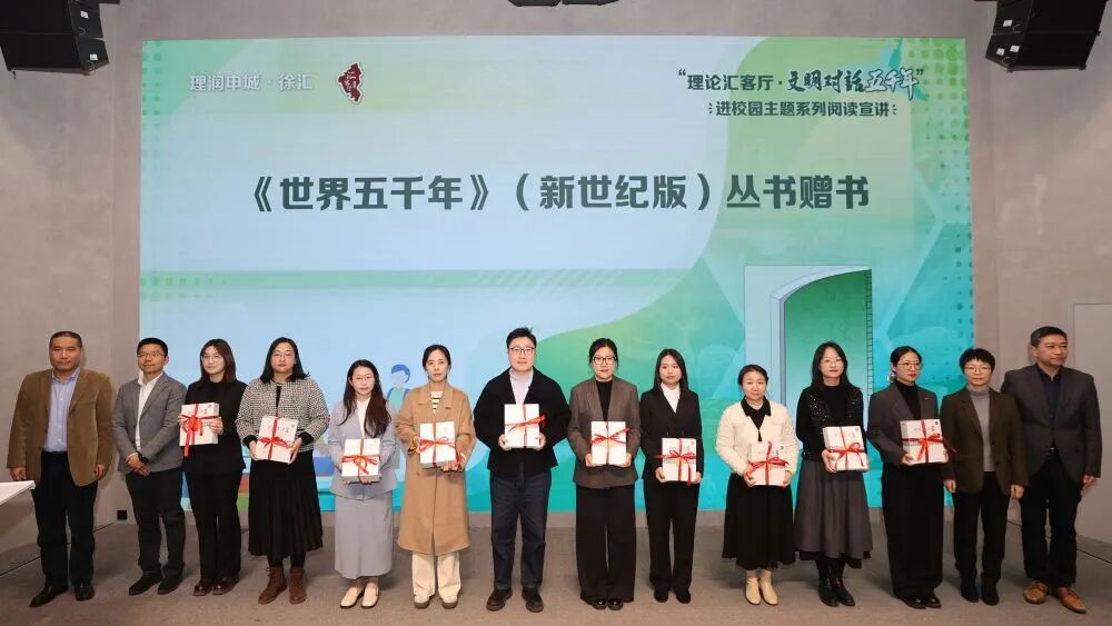 市社联科普处、徐汇区委宣传部、徐汇区教育局和少年儿童出版社有关负责人向首批宣讲学校赠送了《世界五千年》丛书。
