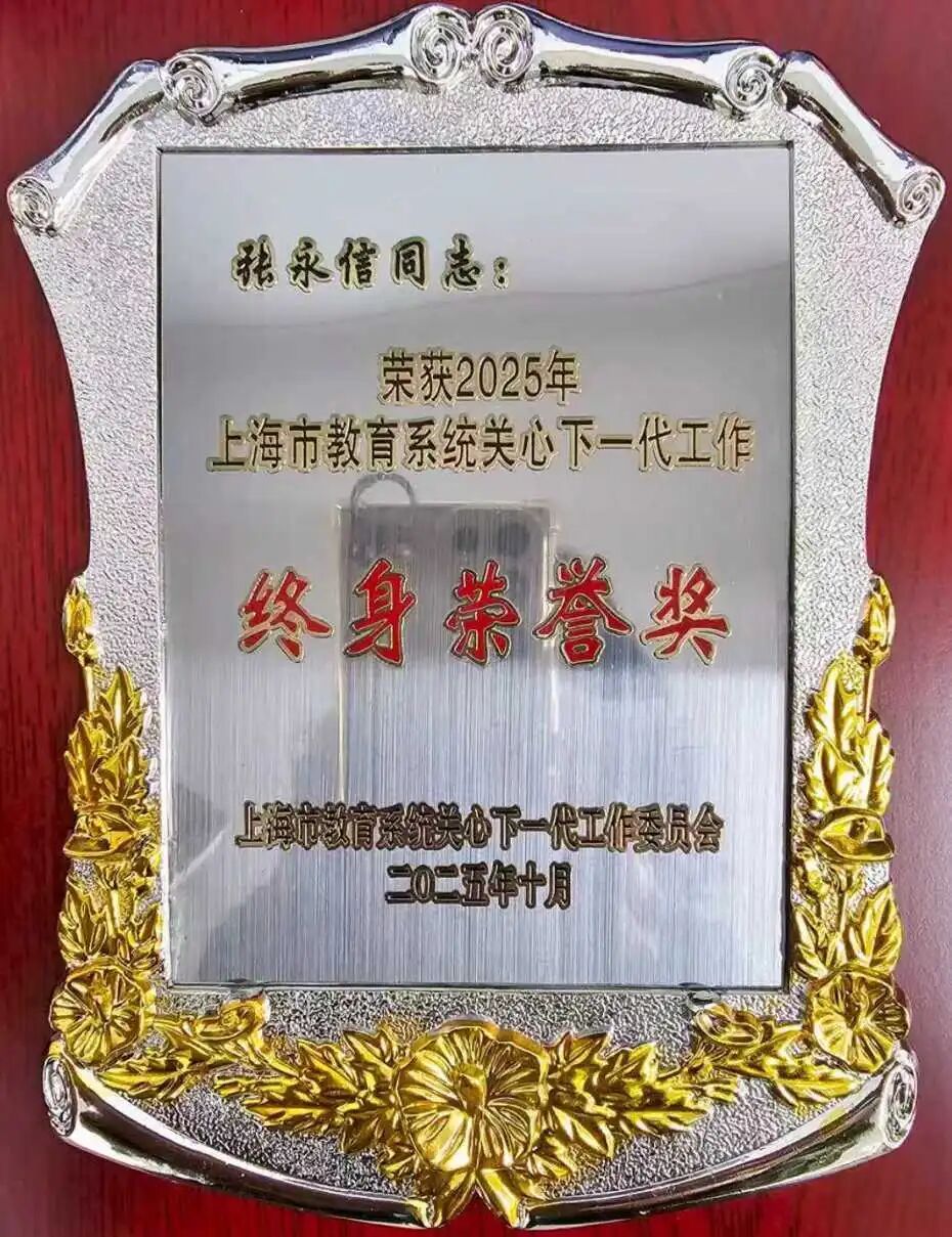 在近期举行的上海市教育系统关心下一代工作委员会成立30周年表彰大会上,我院张永信教授被授予“2025年上海市教育系统关心下一代工作终身荣誉奖”。
