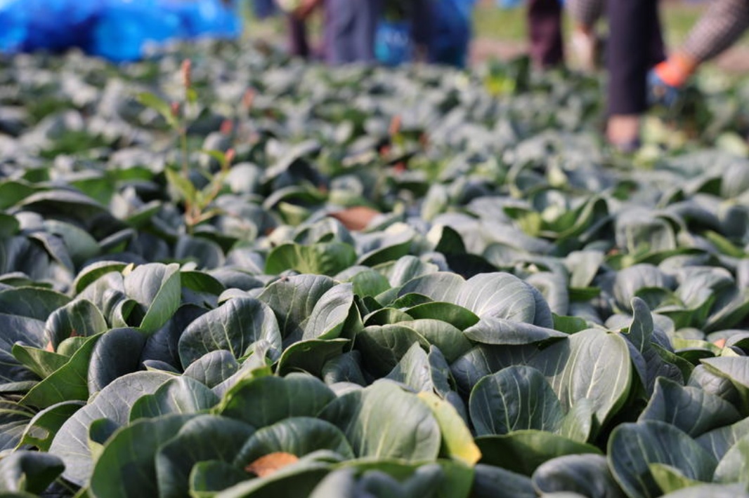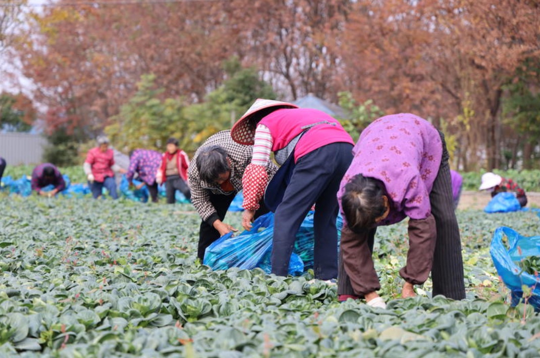 在位于枫泾镇下坊村的上海荣燕乐蔬果专业合作社,十几名菜农分工协作,动作娴熟,她们手持小型镰刀,刀刃贴着垄面轻划,脆嫩的菜根应声断裂,剔除残叶的青菜被整齐地码入袋中,很快被集中装车运往市区市场。