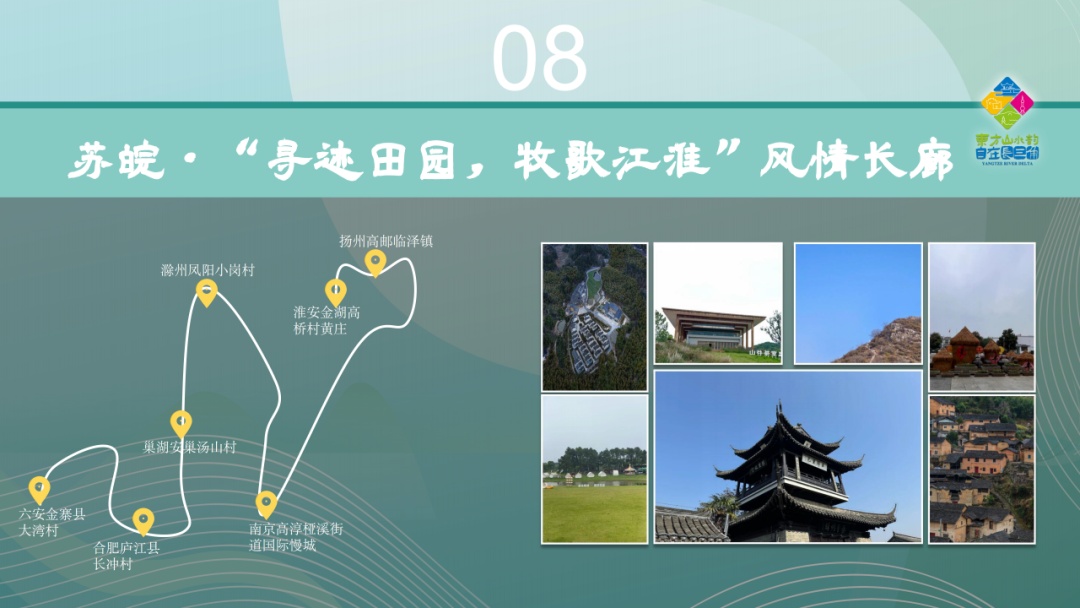 六安金寨县大湾村→合肥庐江县长冲村→巢湖安巢汤山村→滁州风阳小岗村→南京高淳桠溪街道国际慢城→扬州高邮临泽镇→淮安金湖高桥村黄庄