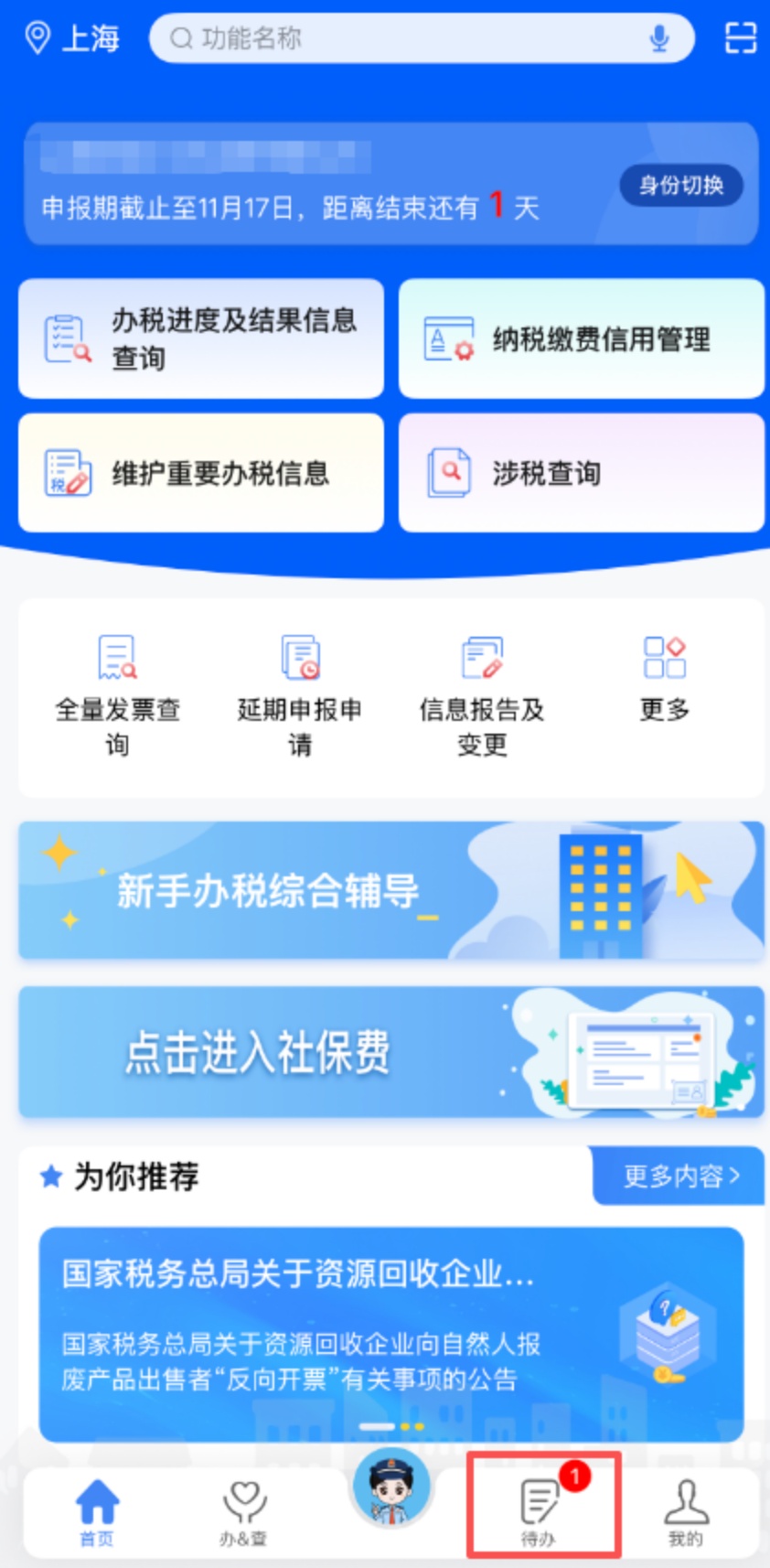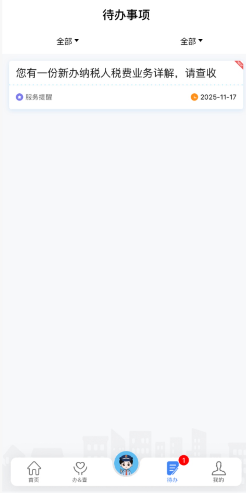 登录电子税务局App,在【待办】模块直接点击查看相关消息。