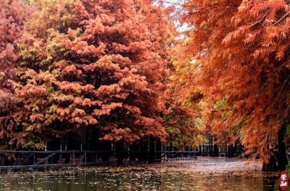 12月,西沙明珠湖景区的水杉林,迎来了一场盛大的变装秀,染上了一片红色,斑斓而绚烂,与倒映在湖面的蓝天白云和周围的景色,共同构成了天高云阔的秋景图。社交平台上,不少游客晒出了在这里划船赏红叶的照片和攻略。