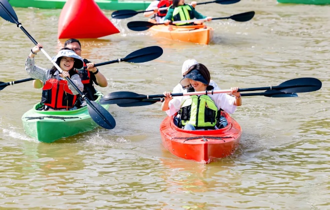 留心一下便会发现,如今在崇明,常常能在乡间河道、公园水面上,见到桨板、皮划艇等水上运动爱好者,大家畅快地在水上划行,感受户外运动的快乐和崇明生态的美好。
