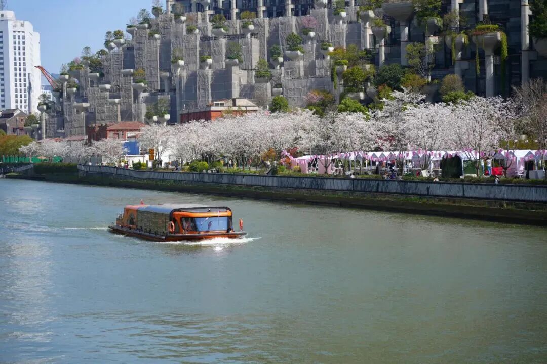 2025年苏州河半程马拉松吸引来自39个国家的7000名跑者,沿岸天安千树“千树樱花季”与苏州河游船单月接待超万人次,让苏州河成为文旅融合新引擎。“周末带孩子来苏河游船,既能欣赏沿岸美景,又能了解苏州河的治理历史,特别有意义。”带着孩子体验苏河游船的陈女士表示。从曾经河水黑臭到如今鱼虾重现,苏州河的变迁也是上海水环境治理的生动缩影。