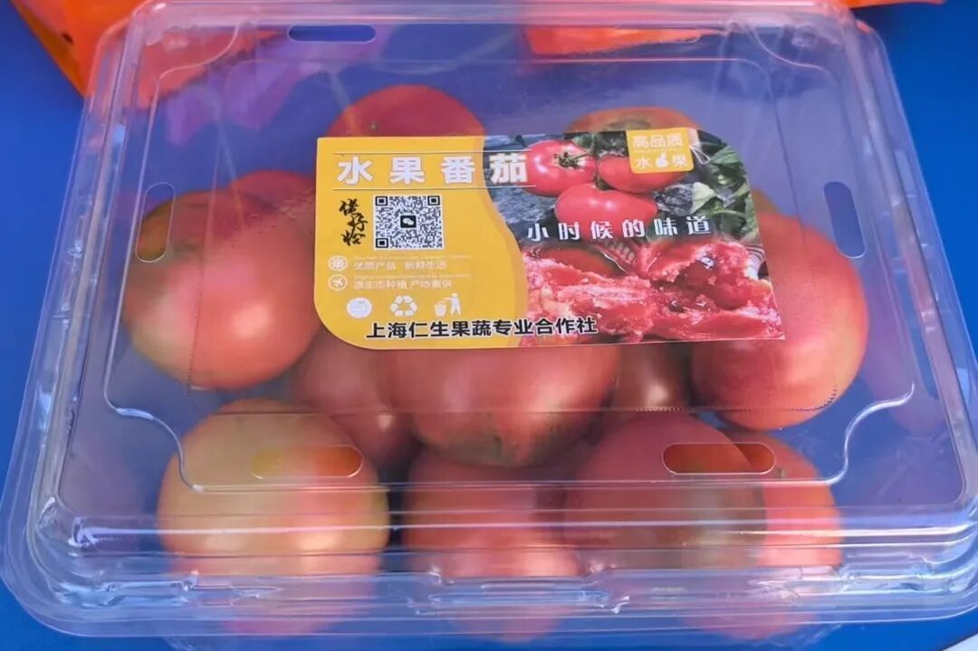 草莓番茄(上海仁生果蔬专业合作社):合作社种植的上海冬季特色蔬果——草莓番茄,果实呈扁圆形,果皮薄,果肉沙瓤,甜度高,带有浓郁草莓香气,咬一口爆汁,甜度可达10-12度,是普通番茄的2倍。
