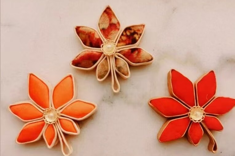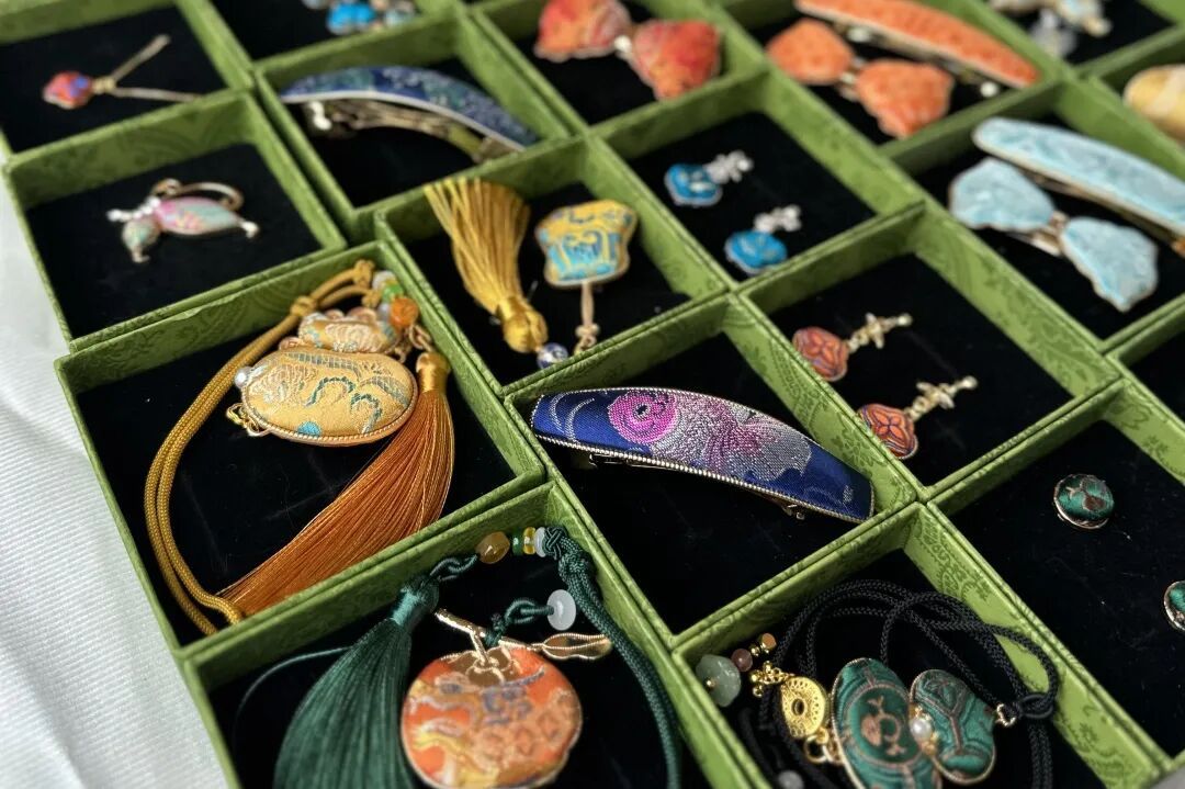 宋锦:带冠文化旗下“瑾翊轩”非遗宋锦手作饰品,将“锦绣之冠”宋锦的千年织造技艺融入现代设计。宋锦纹样典雅古朴,质地坚韧挺括,“通经断纬”的技艺在方寸间展现几何、花鸟等吉祥纹样,丝线光泽温润,尽显东方美学;佩戴既是优雅点缀,更是对千年工匠精神的致敬与传承。