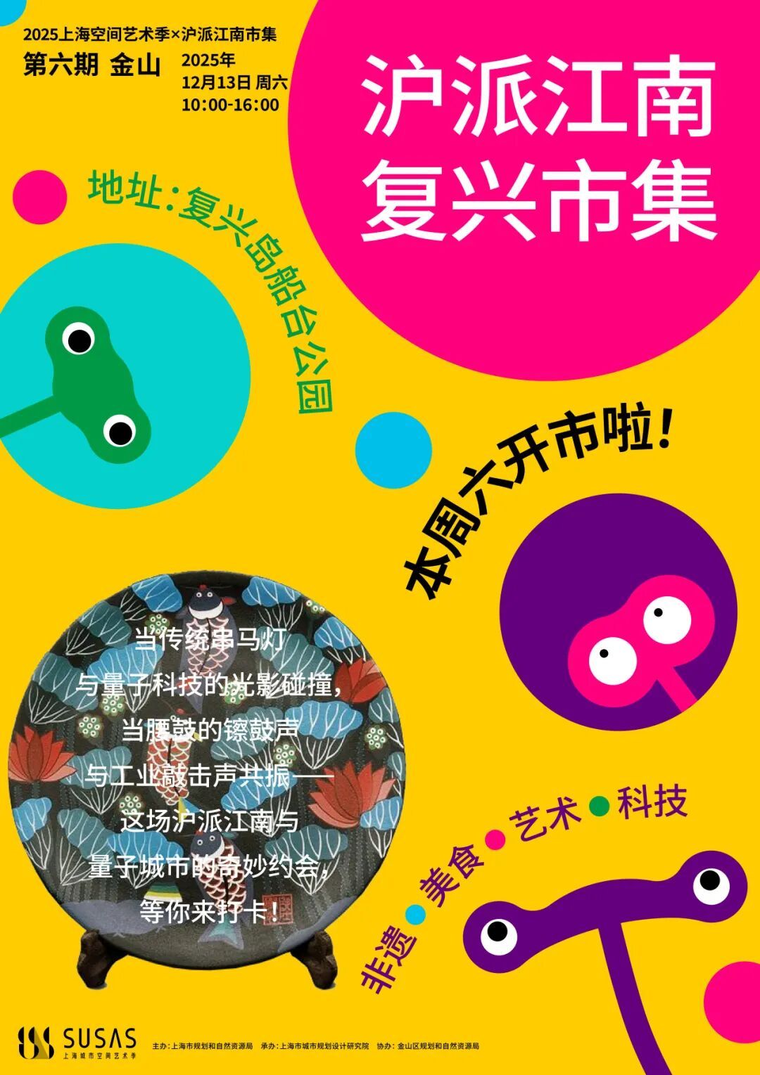 金山,位于上海西南端,属于“六域、八脉、十二意象”中“泾河低地”空间意象。浆声田影,揽水弯中,在这里,吴越文化交融共生,文脉悠长,物产丰饶。寻迹金山市集,农民画、版画、剪纸、盘扣等非遗手作藏着沪派江南的匠心雅韵;当季果蔬、百年方糕与琳琅好物齐聚,尽揽金山的风土真淳与烟火温情。