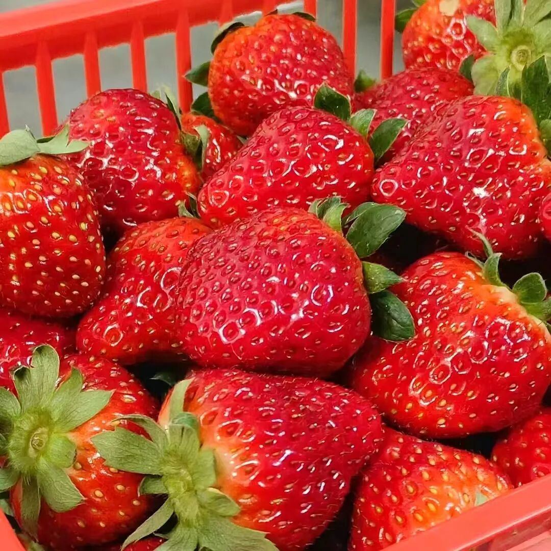 当季草莓(上海毅添水稻果蔬种植专业合作社):基地种植草莓80亩,主打产品为“红颜”“章姬”,当前正是草莓集中上市赏味期,红颜果形饱满,糖度高达14.5°,口感香甜,肉质紧实;章姬果形修长,口感绵软,甜度高,香气浓郁。