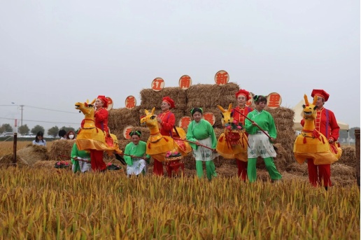 亭林腰鼓是上海市非遗项目,亭林镇自2006年举办“一镇一品”鼓艺大赛传承此技艺。千人腰鼓表演场面壮观:鼓手着彩衣系红绸,以镲声为号齐击鼓,鼓点如雷,队形变换如“五环”穿梭。常与舞龙结合,展现奋发向上的精神。