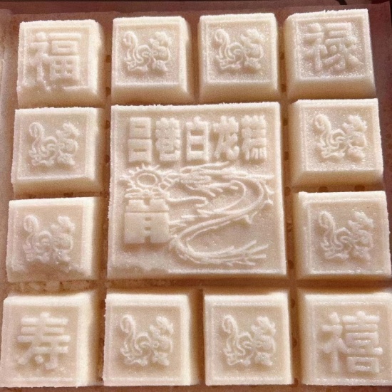 吕巷白龙糕:金山区吕巷镇的传统特色糕点,起源于干巷四圩网船埭,已有百年历史,2015年被列入上海市级非物质文化遗产名录。其制作工艺精湛,需经过配米、泡米、磨粉、拌糖水、筛粉、焋糕、蒸糕等多道工序。原料选用优质糯米、粳米等,按比例配制,口感软糯香甜、细腻润滑、甜而不腻。
