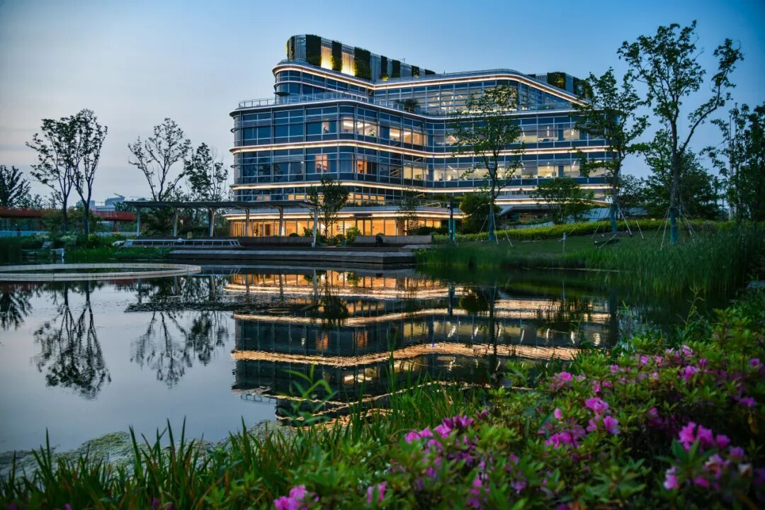 随后,“体验官”步入科技感十足的长三角一体化绿色科技示范楼——这也是上海地区单体建筑面积最大的近零能耗建筑。其外观线条现代流畅,大面积玻璃幕墙与自然环境相映成趣,建筑内核更暗藏多项绿色创新技术。