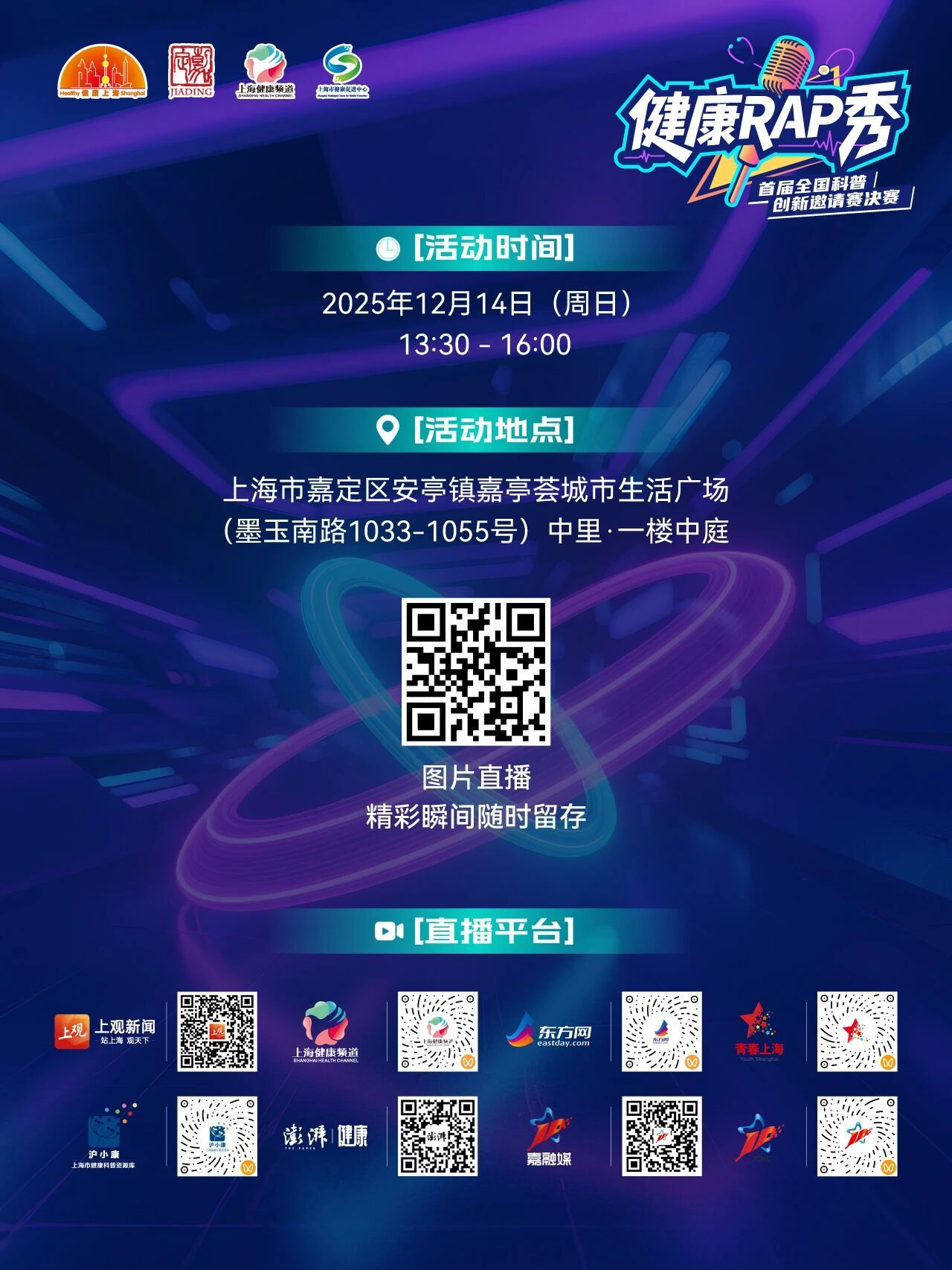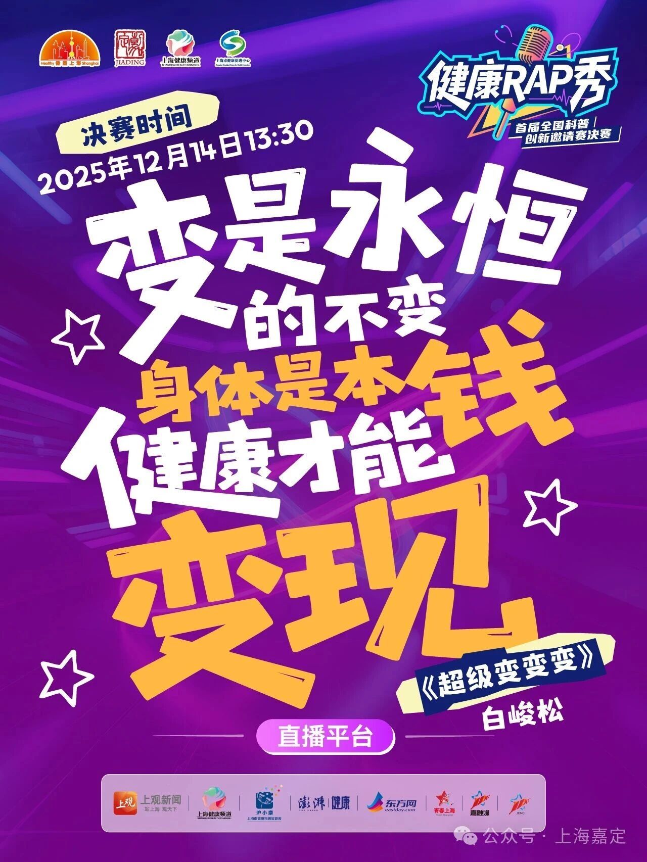 除了选手PK,还有一首为嘉定量身打造的说唱歌曲《健康嘉定》将现场首秀!只能说,期待值已经拉满了!