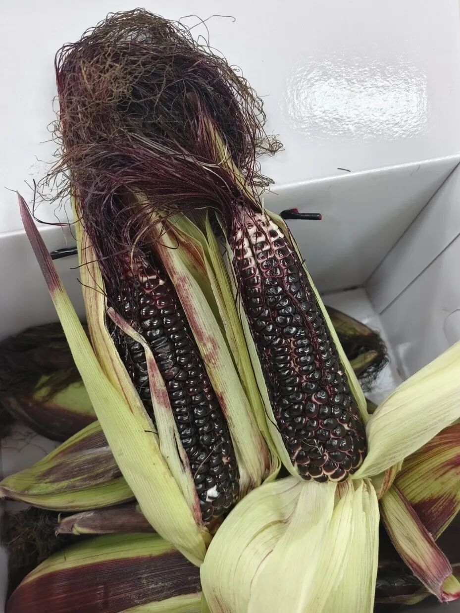 剥开层层厚实的苞叶,瞬间被这份“紫”惊艳——不是寻常玉米的金黄,而是如深紫宝石般的莹润色泽,自带高级感。这份天然紫韵,源自玉米中丰富的花青素,含量是普通玉米的数倍之多,颜值与营养双双在线,每一口都是大自然的“营养馈赠”。