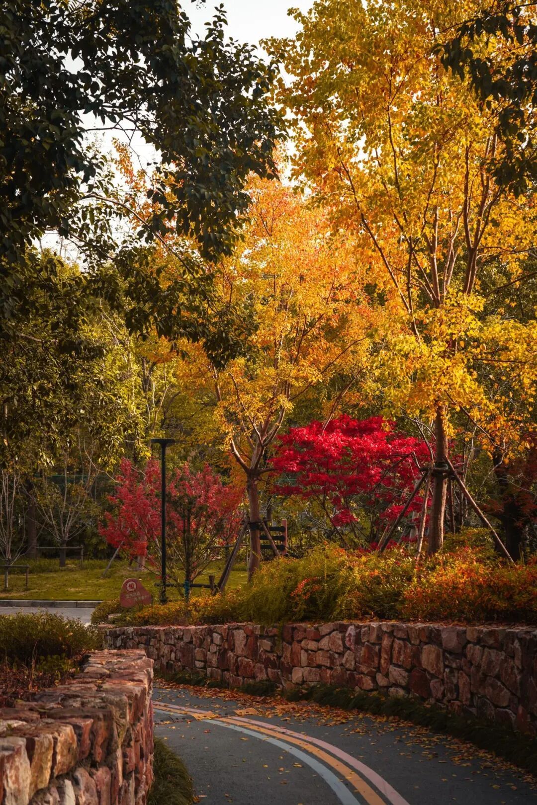 春夏“咻”冬 上海的秋天 向来是最匆忙的过客 这转瞬即逝的绚烂 岂能辜负? 抓紧来看看宝山区顾村镇的秋色 正藏在哪儿等我们呢? 当深秋的风掠过树梢,胡庄公园换上了最浪漫的秋日盛装。金黄的树叶一片接一片飘落,为大地织就一张柔软的金色地毯。 枫叶则燃得最艳,那红浓烈得近乎倔强,像一簇簇凝固的火焰,在灰蒙蒙的天色下格外醒目。 详细地址: 富长路绿地的树叶已然全然金黄,在枝头微微颤动,仿佛要倾尽最后的绚烂。 林间小径上,落叶层层叠叠,踩上去发出细碎的“沙沙”声,是秋天最后的耳语。 详细地址: 沈杨公园的空气里弥漫着泥土潮湿的气息和枯叶特有的清香,混合成一种萧瑟又静美的味道。 天色暗得越来越早,傍晚时分,夕阳的余晖已留不住多少暖意。鸟雀的鸣叫稀疏了,取而代之的是风声穿过光秃枝丫的空旷回响。 详细地址: 当最后一片枫叶也告别枝头 当晨霜变成薄薄的冰晶 冬天便真的来了 万物收起喧嚣 归入沉寂,只等一场初雪 将所有的色彩温柔地覆盖