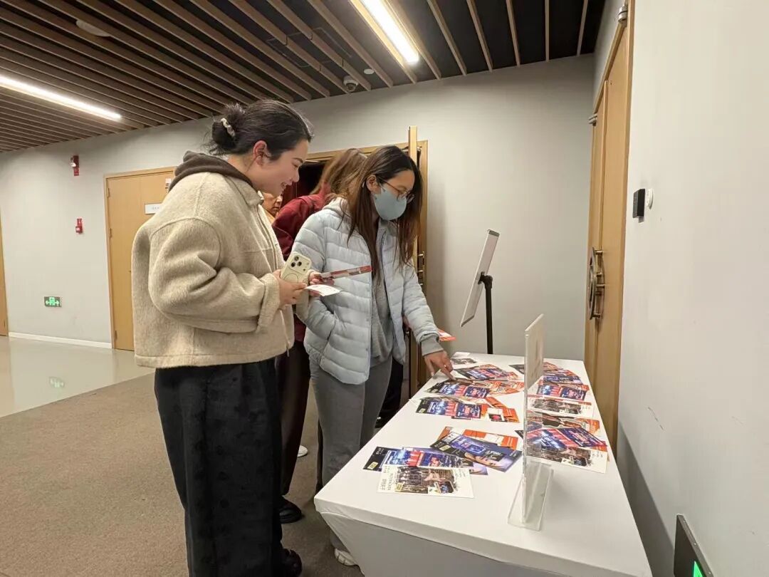 观众在入口处的剧目海报及手账卡发放处驻足拍照