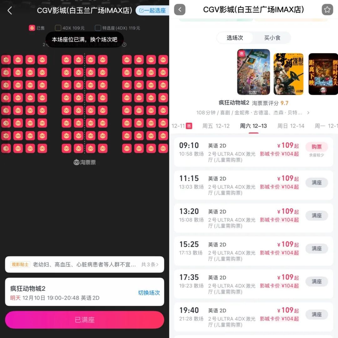 近日,迪士尼动画电影《疯狂动物城2》在全国热映,目前票房已突破30亿。而在虹口区白玉兰广场CGV影城,其4DX版本更是掀起抢票热潮,成为不少影迷眼中的“观影首选”。 记者在购票平台查询发现,该影城本周末4DX影厅的场次几乎全部显示“满座”,工作日晚间黄金时段也仅零星边角座位可选,火爆程度可见一斑。 “这周二的上午,我们就已经开放了本周全部4DX厅的预售,没想到工作日除了黄金时段,早晚场也几乎卖空,周末更是全线售罄。”CGV影城白玉兰广场店的工作人员刘先生向记者介绍。他还表示,最近每天都会接到大量观众来电,咨询《疯狂动物城2》4DX版本的预售情况和场次安排,“平均一天几十通电话是有的”。 为切实满足观众的强烈需求,影城本周末对《疯狂动物城2》的场次做出了特别安排。记者在购票平台看到,白玉兰CGV影城周末场次已集中排映4DX版本,力求让更多观众能体验到这场沉浸式冒险。 为何4DX版本如此受欢迎?除了影片本身的口碑外,4DX独特的观影体验是关键。“三面环绕屏配合动感座椅和环境特效,让观众仿佛真的进入动物城,和朱迪、尼克一起冒险。”为切实满足观众的强烈需求,影城本周末对《疯狂动物城2》的场次做出了特别安排。记者在购票平台看到,白玉兰CGV影城周末场次已集中排映4DX版本,力求让更多观众能体验到这场沉浸式冒险。 记者在影城现场遇到了刚看完电影的观众黄女士。“太像在迪士尼坐‘热力追踪’了!”她兴奋地分享道,“尤其是追车戏,座椅会跟着晃动,旁边的两面墙壁上也会有画面,真的有飙车的感觉,风吹过来的时候特别沉浸。”黄女士表示,虽然4DX票价高于普通厅,但这次体验“非常值得”,并透露自己之前看《哪吒2》时也特意选择了4DX影厅,“这种大片配上动效,震撼感翻倍”。 图源:网络 究竟什么是4DX?简单来说,它是一种通过动感座椅和环境特效,让观众从“看电影”走向“进入电影”的沉浸式观影技术。影厅内,座椅不仅会随着剧情震动、倾斜,还配备了喷水、刮风、闪光、气味等多达20余种环境特效,从视觉、听觉、触觉甚至嗅觉多方面还原电影场景,打破传统观影的边界。 据介绍,4DX动感座椅采用智能感应系统,动作响应灵敏且贴合剧情,而环绕式屏幕与同步特效的设计,进一步强化了观影的包围感和代入感。此次《疯狂动物城2》中密集的追逐场面与城市景观,恰好与4DX的技术特点高度契合,成为吸引观众的重要原因。 随着电影技术的不断升级,如4DX这样的沉浸式影厅正逐渐成为观众,尤其是年轻观众和家庭观众的新选择。面对《疯狂动物城2》掀起的4DX观影热潮,你是否也心动了?你会选择去体验一场“能动起来”的电影吗? 记者:龚乐 图片:龚乐、网络 编辑:龚乐 来源:虹口区新闻出版和电影管理办公室
