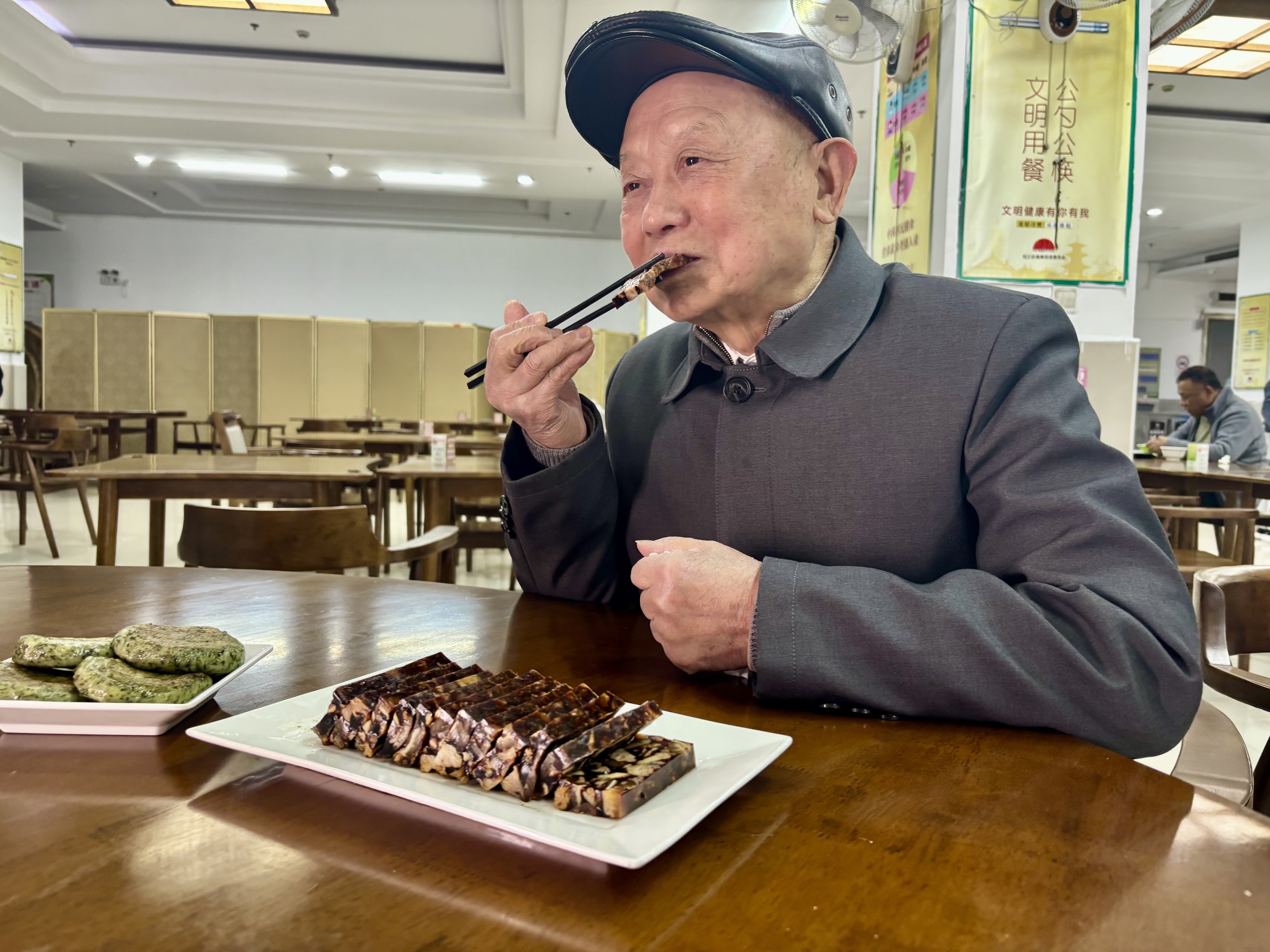 “吃起来香味足,挺爽口的。”12月12日中午,居民张军民在方松餐饮旗下兰桥食堂用餐时满意地说。随着冬意渐浓,这道冬季限定的冻肉悄然走红,吸引了不少居民特意前来尝鲜。