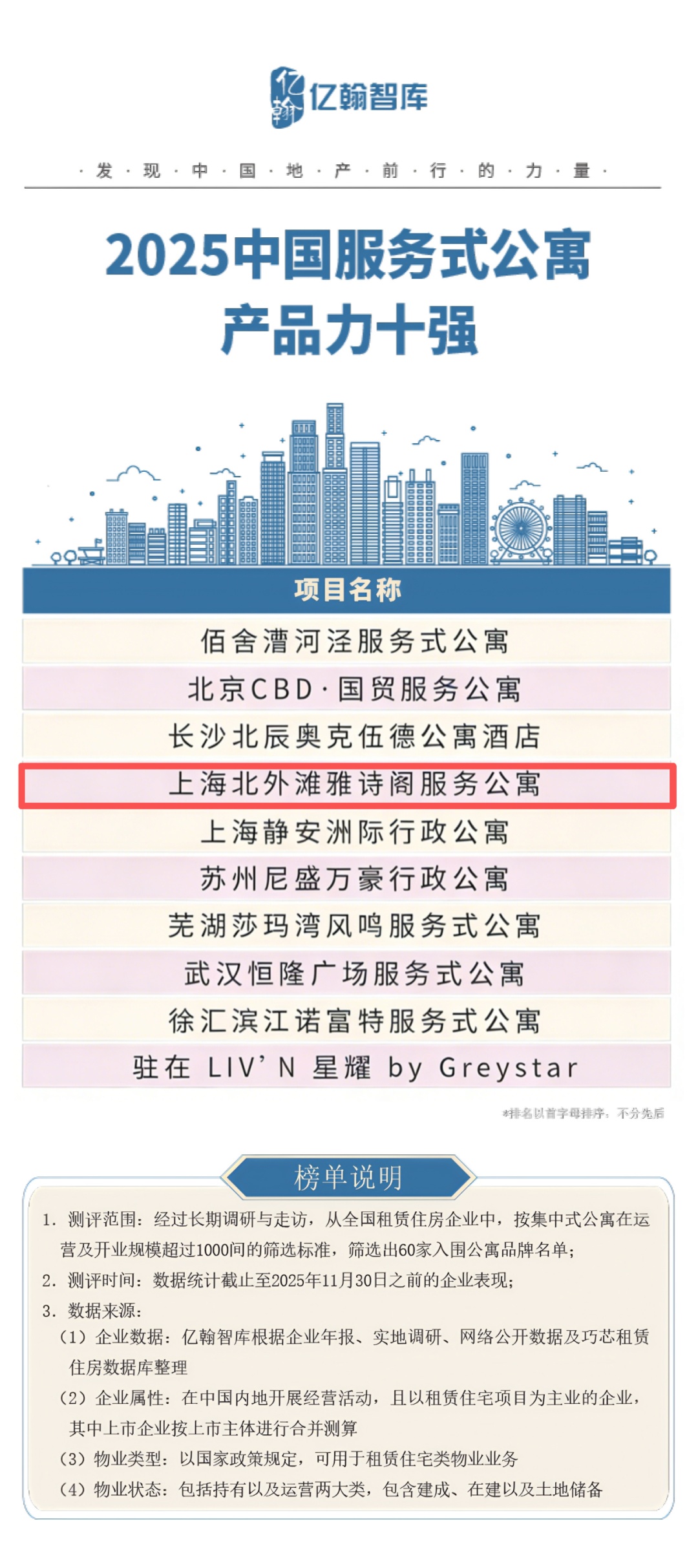 近日,上海雅诗阁服务公寓及雅遇公寓双项目捷报频传,获得多个奖项。在克而瑞·长租《2025年中国住房租赁产品力峰会——“产品精耕・新质生长”暨2025年度产品力颁奖盛典》上,上海北外滩雅诗阁服务公寓在华北、华南、中西部及华东全国四大区域的百余优质项目中脱颖而出,斩获《2025 年度中国住房租赁产品力十佳高端租赁项目》荣誉;上海雅遇公寓(北外滩)也凭借稳步打磨的综合实力,入围《2025中国住房租赁产品力 TOP100》。
