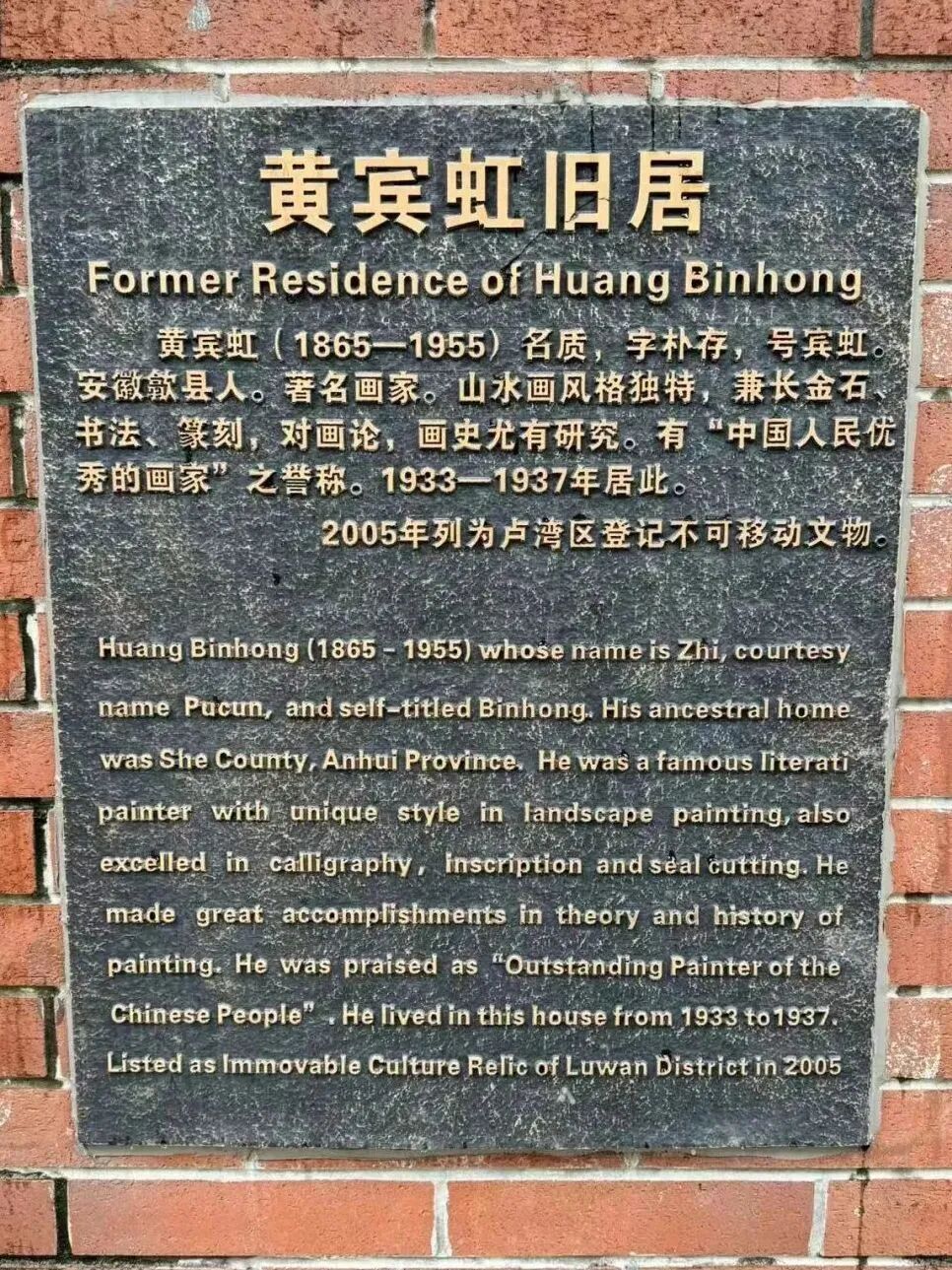 黄宾虹生于浙江金华,一生足迹遍布大江南北,却和上海有着很深的渊源,前前后后在上海居住三十余年。1933年(一说1934年),他在今自忠路420号安顿下来。说自忠路的门牌或许还不清楚,其实就是丰裕里自忠路大门的对面。这是一座联排西式小洋房,房前有小院,独门独户有铁门。在这里,黄宾虹有了属于自己的画室,因三面有窗而被黄宾虹称为“玻璃厅”。