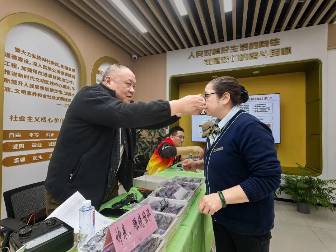 公益便民区,志愿者们凭借精湛的手艺和耐心细致的服务,把“小修小补”做到了居民心坎里。交通卡退卡换卡、磨刀、修伞、修拉链、钟表维修、眼镜维修、便民裁剪等服务一应俱全,满足了居民日常生活的各种需求。修拉链师傅还现场分享小妙招:“拉链卡齿不用愁,涂点护手霜润滑一下,立马顺畅!”这些实用的技巧和生活智慧,让大家纷纷点赞。