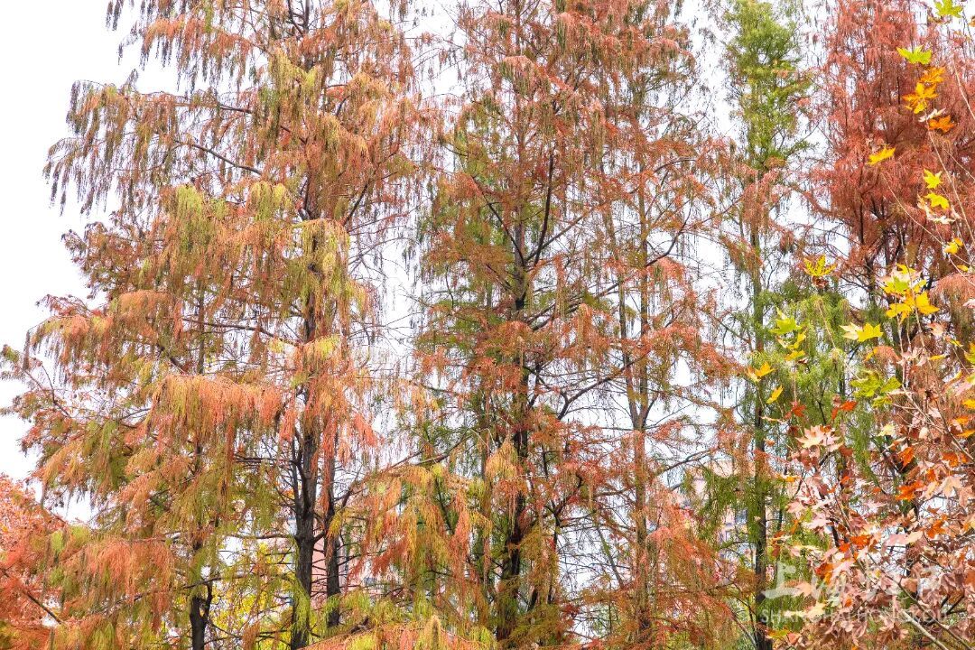 当银杏叶簌簌飘落 水杉也悄然变色 水杉被誉为植物界的 “活化石” 其树形优美 叶色四季变化明显 入秋后 随着气温下降 它的叶片逐渐由青翠转为金黄 继而晕染出醉人的锈红 仿佛把夕阳披在了身上 浪漫的甜爱路上 百余株水杉整齐排列在道路两侧 水杉叶被暖阳浸染 与路边的爱情涂鸦相映成趣 漫步其中 随手一拍都是自带文艺滤镜的大片 和平公园内也种植了水杉和落羽杉 它们临水而生 树影倒映在水面上 勾勒出独特的水岸画卷 无论是远观全景 还是近看细节 都别有韵味 随着寒意渐浓 杉叶颜色会愈发浓郁 不妨放慢脚步 把这份色彩和诗意存进 你的专属时光相册吧~ 记者:陈怡 图片:杨伯荣 编辑:陈怡