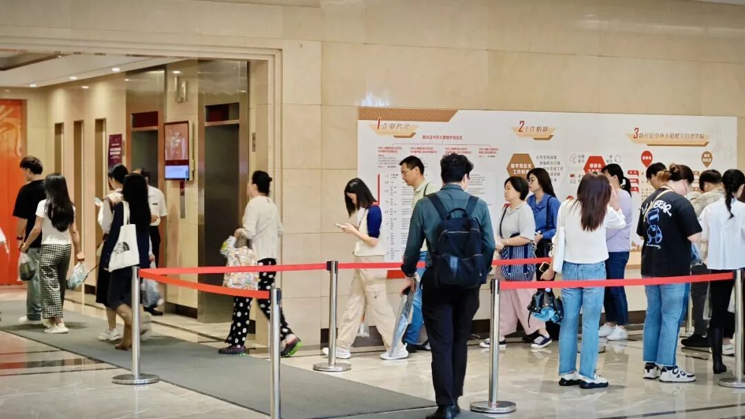工作日早高峰时段,新长征中环大厦一楼大厅内,物业有序引导、白领自发排队,一条秩序井然的“长龙”快速流动,成为每日上演的常态景象。自2019年以来,这幢坐落于普陀区长征镇的老牌优质商务楼宇,始终保持满租态势,尽显蓬勃经济活力。