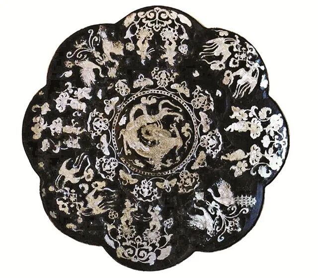 唐银平脱梅花瓣形漆奁(顶视图)