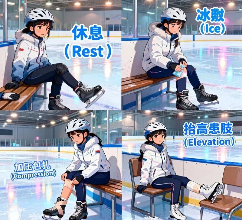 此外,若不慎扭伤或撞伤,科学处理至关重要。付青格介绍,可遵循“RICE原则”进行紧急处置:“RICE原则包括休息(Rest)、冰敷(Ice)、加压包扎(Compression)、抬高患肢(Elevation)。”他强调,受伤后应立即制动,在48小时内每2至3小时冰敷15到20分钟,以减轻肿胀和出血;用弹力绷带适当加压包扎,减少软组织渗出;同时将患肢抬高至高于心脏水平,促进血液回流,缓解肿胀。