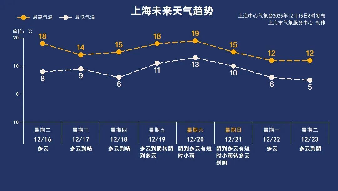 随着本轮冷空气影响收尾,气温很快奋力回升,本周二在阳光与西南风的双重助力下,全天气温来到8~18℃,上海入冬的脚步再被打乱。近期冷暖空气拉扯不停,降温和升温都匆匆而过,气温起伏,但幅度都不大,最高在14~19℃之间。周后期暖湿气流增强,本市云系增多,并有小雨出现。周日起受不断南下的冷空气影响,气温再往下走一走。离冬天越来越近的时候,气温多变化,提醒大家及时关注最新预报。