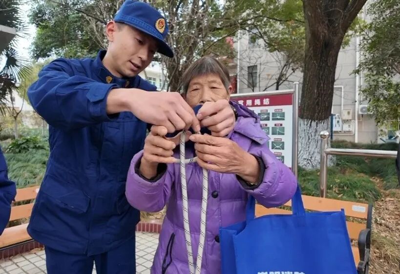 除了灭火实操,活动现场还设置了科普区域,消防志愿者和社区工作人员向居民发放图文并茂的家庭防火手册等宣传资料,并耐心解答大家提出的问题。在结绳教学区,吸引了尤其多居民的围观,消防员展示了在紧急情况下如何打不同的绳结。这种贴近生活、简单易学的方法,让大家直呼“实用”。