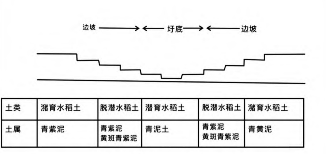 中段田块(二进田):属脱潜型水稻土,以青紫泥或黄斑青紫泥为主,排水条件中等,有机质积累较为明显。