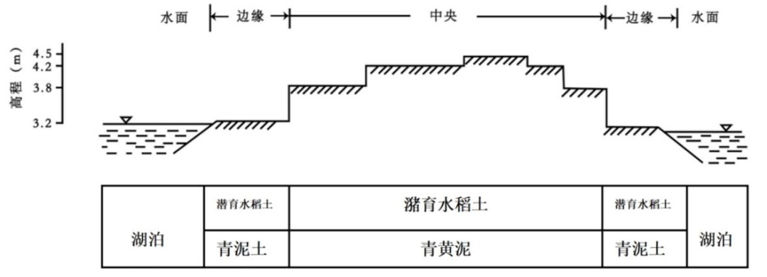 由于湖群流水的强烈侵蚀作用,这里的地形被切割成不规则的岛状地貌,微地貌呈现出高低起伏的特征。高程一般在3.8至4.2米之间,部分区域低于3.2米,整体呈现出中央高、四周趋低的格局。在微域范围内,发育有三种不同亚类的水稻土,但其微域分布规律通常表现为两个亚类的组合,例如游育水稻土之上发育潴育水稻土,即古泥土与青黄泥的复合区域。然而,湖岛内部的水稻土亦有三个亚类,由于水流的切割作用,这些土壤类型较为破碎,表现为青泥土、青紫泥、青黄泥的复合分布,呈现出不规则的排列。