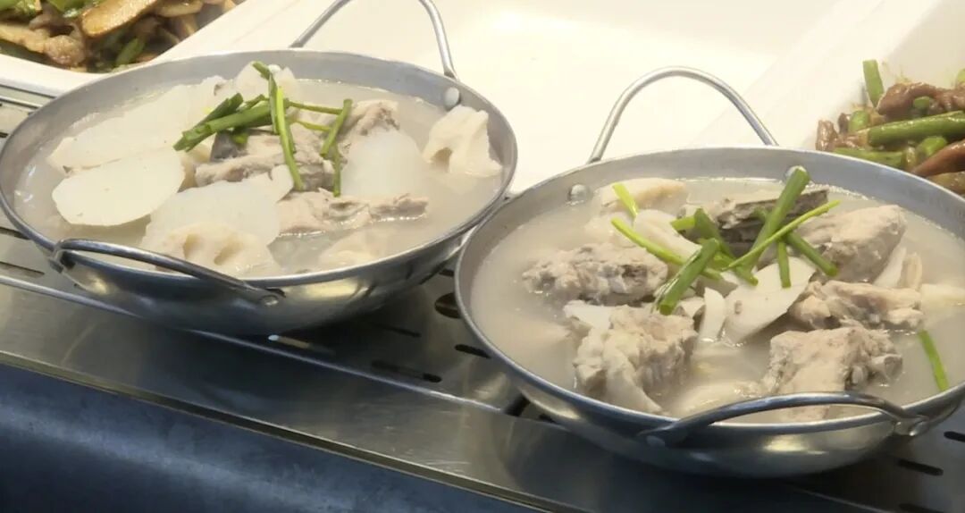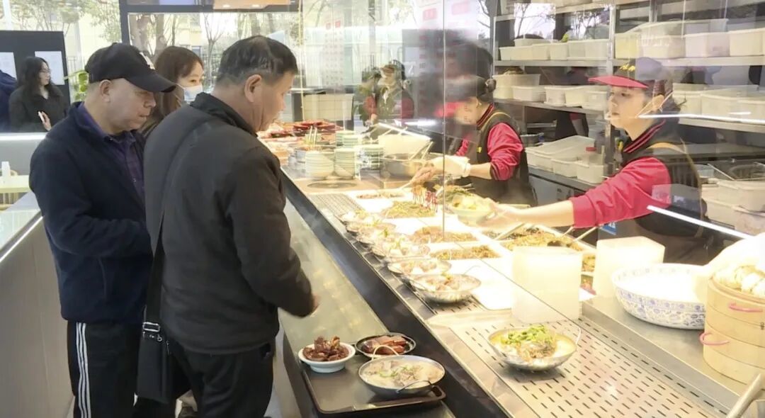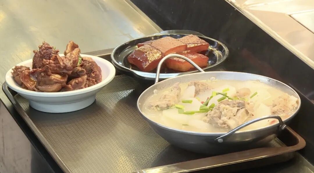 中午十一点半,食堂迎来用餐高峰。取餐窗口前,既有白发苍苍的老人,也有步履匆匆的年轻上班族。冒着热气的锅仔里,奶白的鲫鱼汤泛着油光,清亮的羊肉萝卜汤香气四溢,排骨莲藕汤透着淡淡清甜。不少顾客端着餐盘在新品前驻足挑选。一位年轻顾客表示:“我觉得这里的菜不仅适合老年人,也适合我们年轻人。像新推出的羊肉炖萝卜这类冬季时令菜,非常应季,而且对肠胃好,能起到养生效果。”一位老年顾客也对菜品表示满意:“我们今天点了四个菜一个煲。羊肉是温性的,适合冬天进补,萝卜比较清淡。他们烧的羊肉口感很好,炖得很酥烂。”另一位老人补充道:“食堂会根据季节上新菜,菜的做法很照顾我们老年人,适合大家的口味。”
