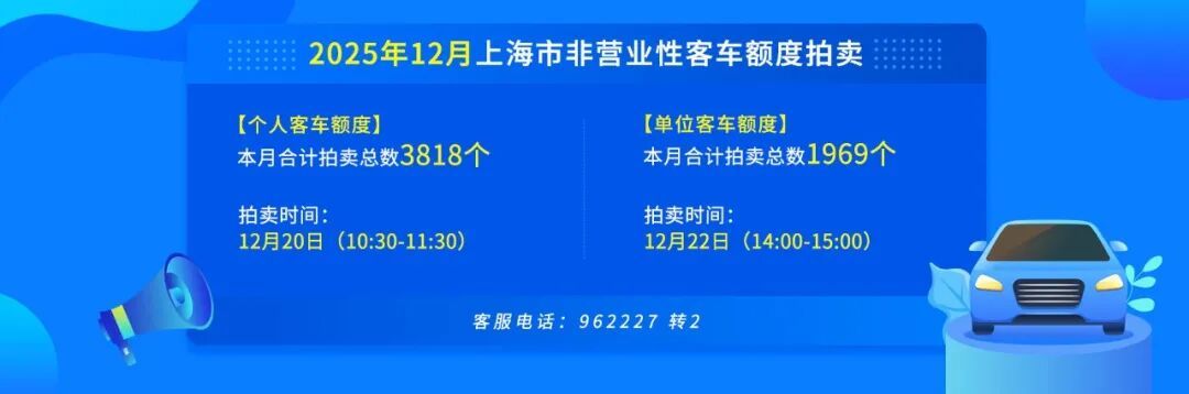 12月沪牌拍卖公告