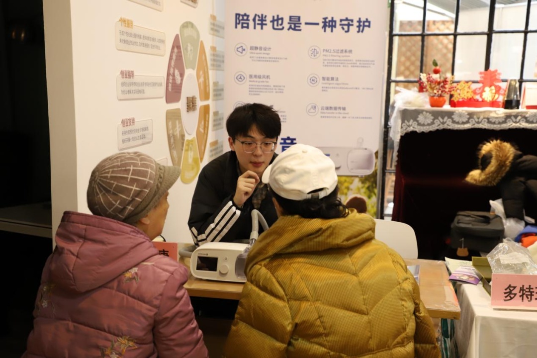 活动现场,“关爱睡眠展示专区”成为焦点,众多前沿助眠科技产品齐聚一堂,让银发族感受智慧养老的魅力。睡眠监测仪可整夜记录呼吸、心率等数据,让睡眠质量“可视化”;搭配的睡眠音响能播放舒缓自然音效,营造安心入眠环境。听力检查设备为老人检测听力,配合助听器,助力老人“耳聪脑明、主动健康”。专业睡眠呼吸机体验帮助老人解决睡眠呼吸问题,光电子纤维睡眠袜则通过促进足部循环改善睡眠。此外,助眠精油以薰衣草、洋甘菊等植物香气,温和调节情绪与睡眠节奏。