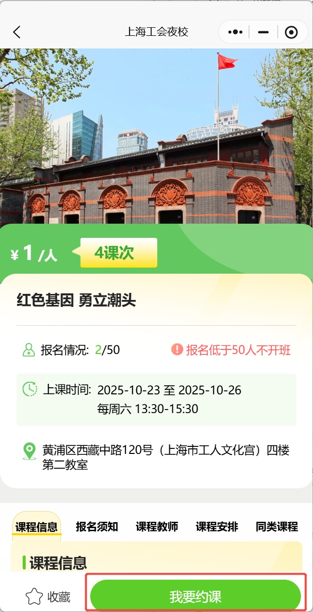 1.进入“工会夜校”小程序,点击“组织约课”版块,同时底部导航栏也有单独入口;