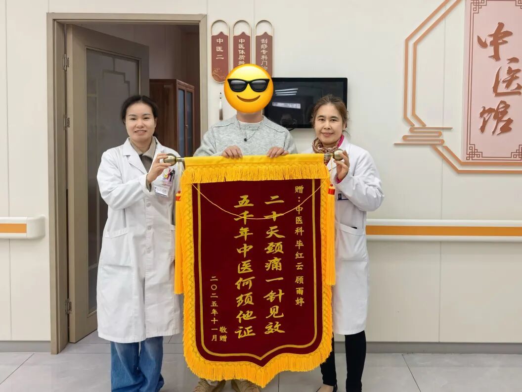 “二十天颈痛一针见效,五千年中医何须他证!”一面饱含感激的锦旗,近日送到海湾镇社区卫生服务中心中医科毕红云、顾雨婷医生手中。患者印先生被颈痛困扰二十日,经中医针刺治疗后重获轻松,这则温暖的医患故事,不仅定格了基层诊疗的暖心瞬间,更让中医智慧,在社区一线绽放出鲜活生机。
