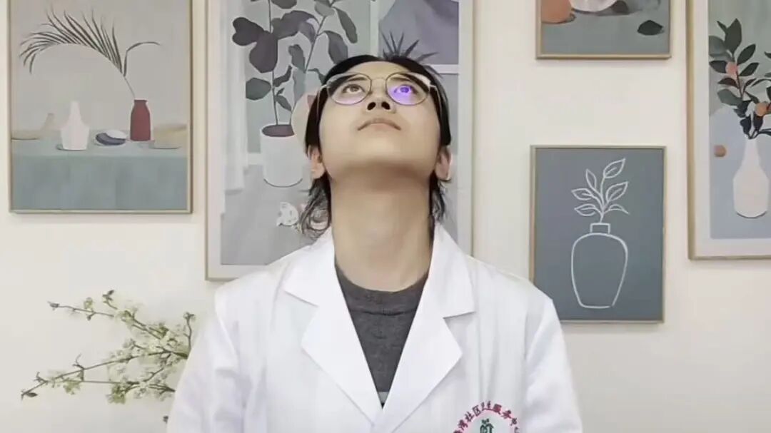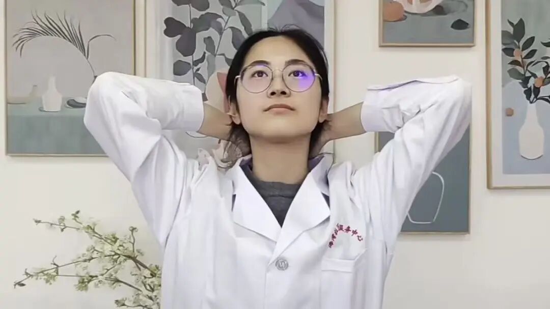 头颈后仰观天并逐渐加大幅度,稍停数秒后还原,共做八次;