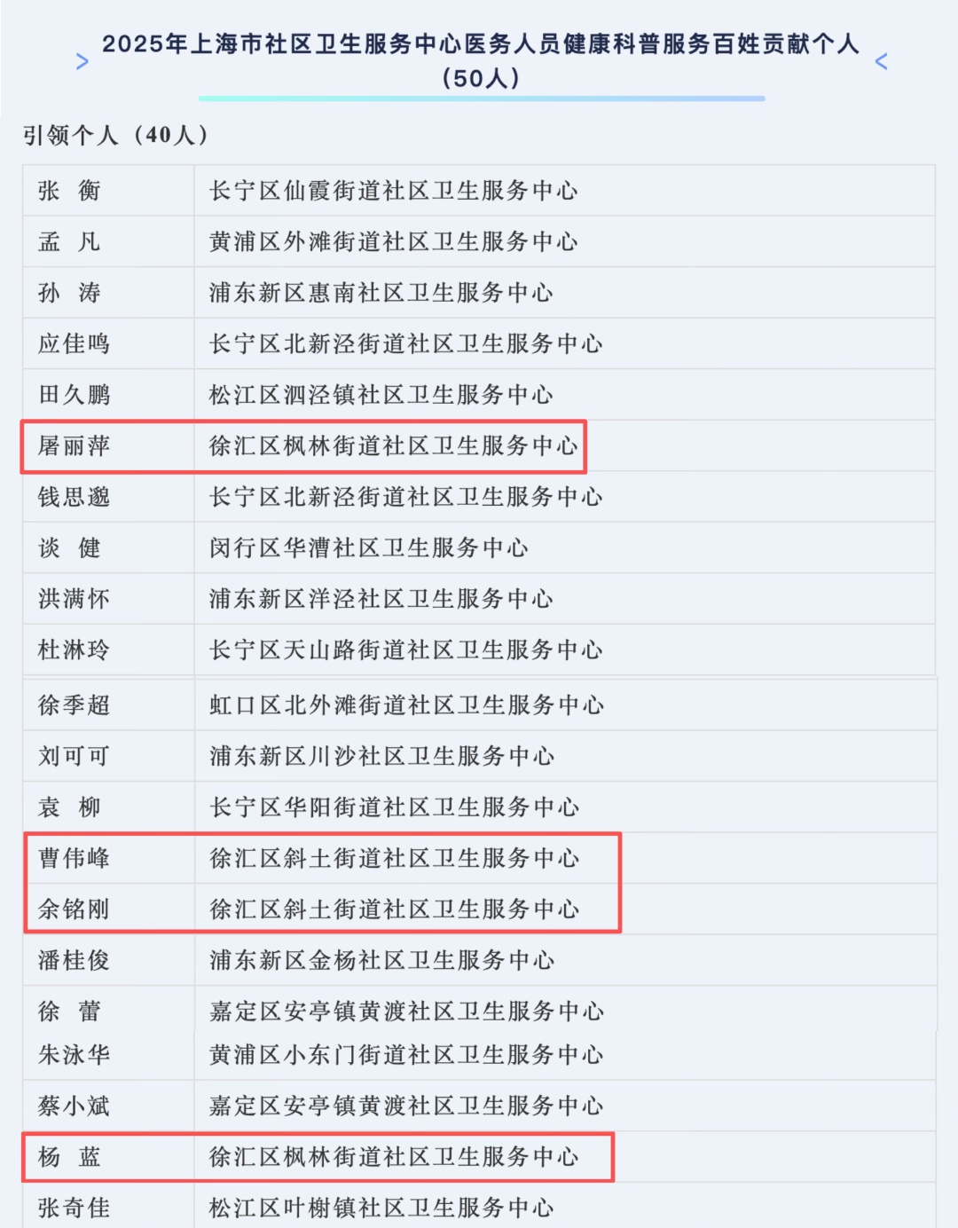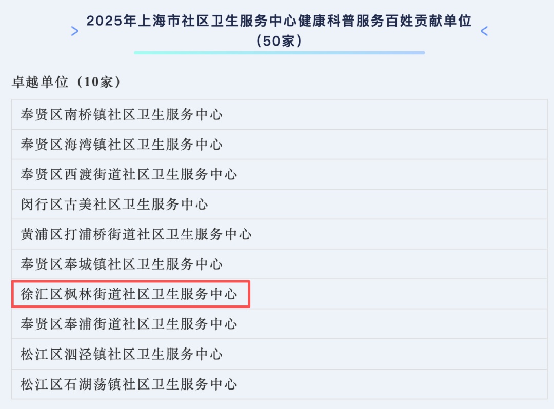 近日,2025年上海市健康科普服务百姓贡献榜评选结果正式揭晓。徐汇区始终坚持以科普提升居民健康素养为核心,不断创新传播形式、拓展服务载体,营造全社会关注健康、学习科普的良好氛围。在此次评选中,徐汇区表现突出,共有5家单位和6位个人上榜,充分彰显了徐汇区在健康科普与社会服务方面的扎实基础与积极成效。