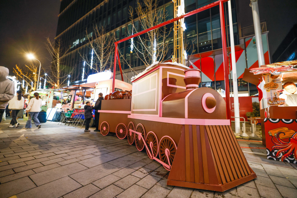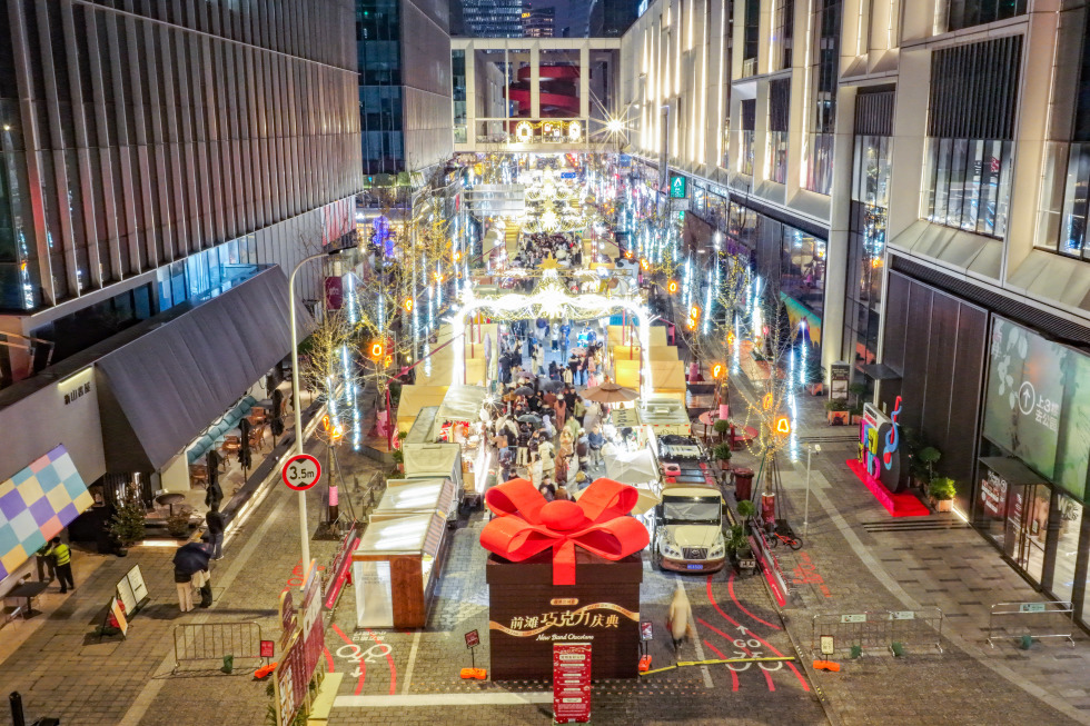现场弹唱、绘本人偶巡游、定时人造降雪等丰富的互动表演也带来了不间断的活力,穿行巷间的“前滩星光王国号”童话列车营造充满惊喜的节日氛围。