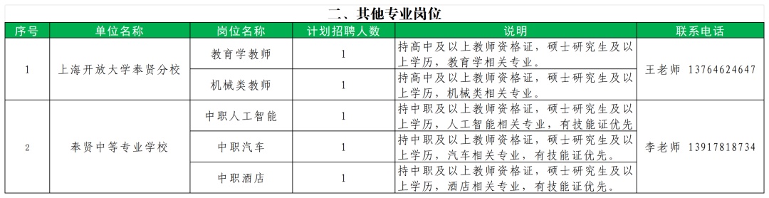 根据《上海市事业单位公开招聘人员办法》(沪人社规〔2019〕15号)的有关规定,结合奉贤区教育事业发展需求,现发布2026年度奉贤区教育系统第二批教师招聘公告。