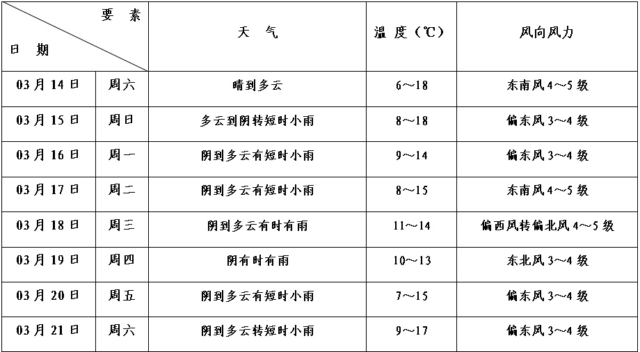 本区未来十天天气预报