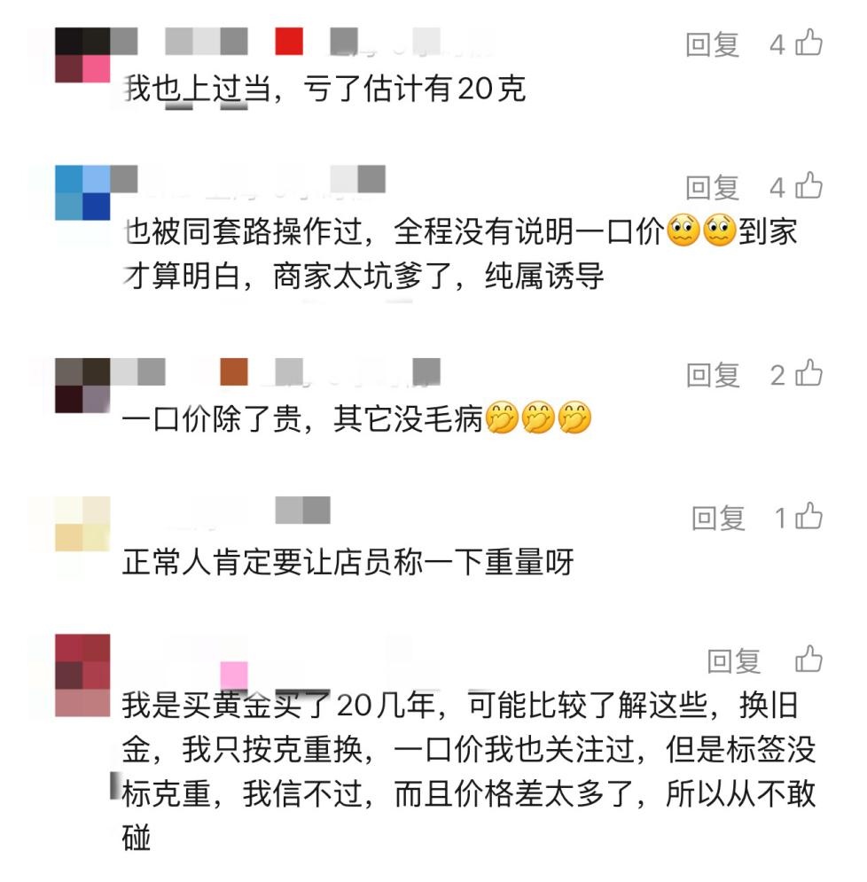 也有网友总结出一套“实战经验”:“我现在进店就直接说,不看一口价,只看克重。其实也好分辨,直接写价格的就是一口价,只写克重的才是按克加工费。”