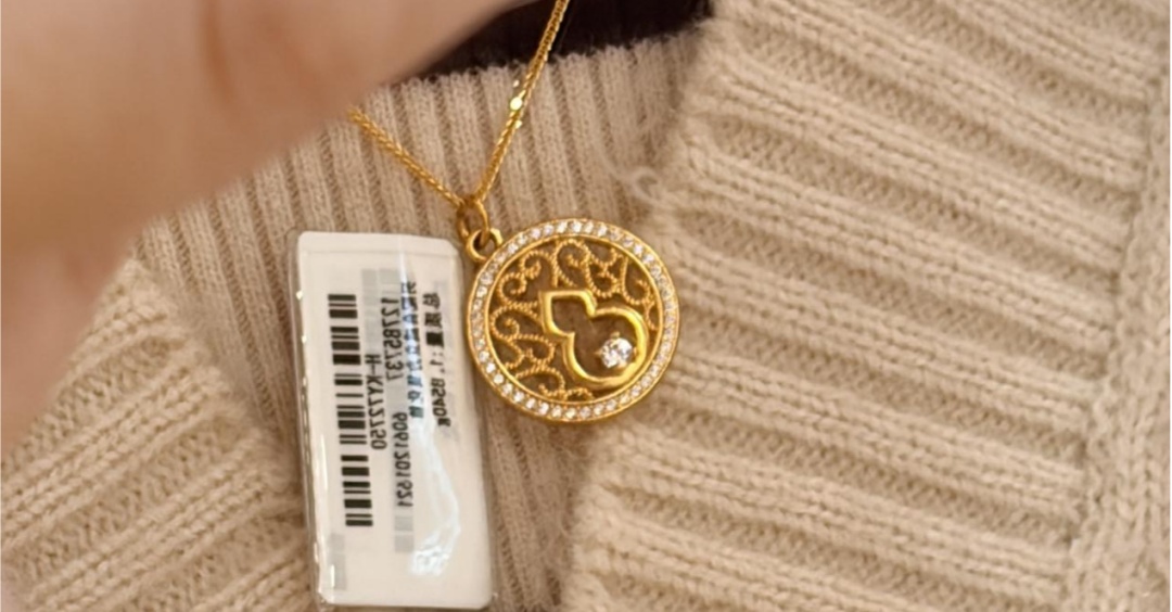 如这款葫芦造型吊坠,店员从柜台拿出后,记者才发现被压在首饰盒内衬之下的价签,上面只标注价格5000元,没有克重信息。在记者主动询问克重后,店员才口头告知,这款吊坠重约2克多。按此折算,每克单价达2500元,而当日金价约为1500元/克。光是“工费”一项,每克就摊了近1000元。