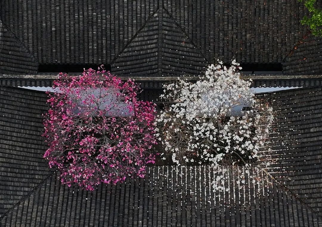 双色玉兰相映同框