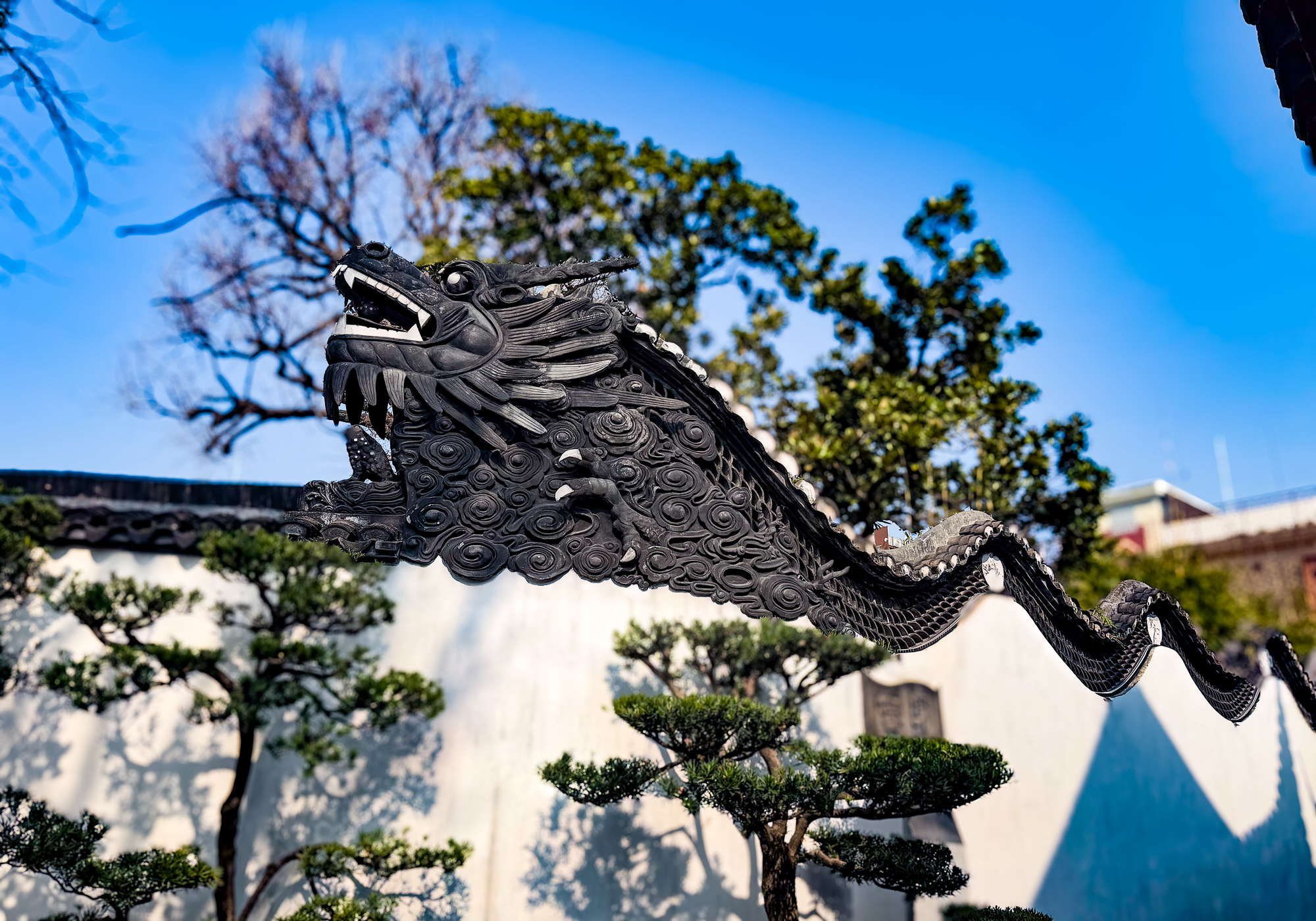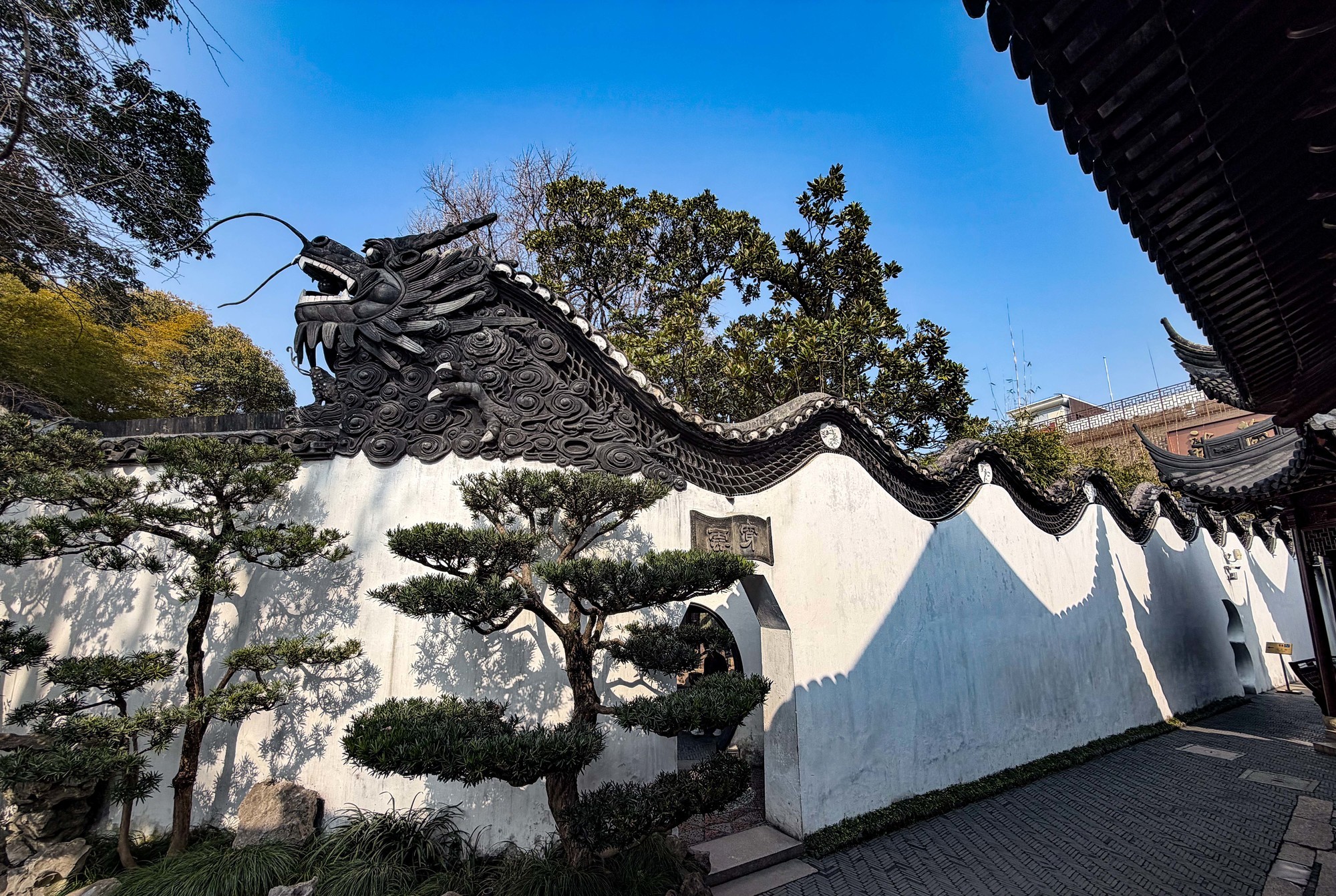 豫园始建于明嘉靖三十八年(1559年),由时任四川右布政使潘允端为孝敬父母所建。园内藏有五条龙墙——穿云龙、双龙戏珠、卧龙、眠龙,是江南园林中唯一以龙墙分割空间、小中见大的园林。你走到哪儿,龙就蜿蜒跟到哪儿。